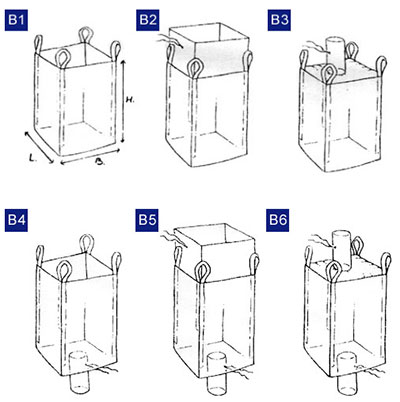 In het overzicht onze basis types van big-bags die wij in verschillende afmetingen kunnen leveren: